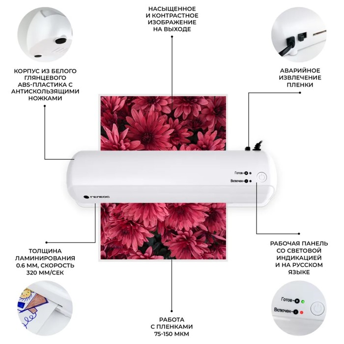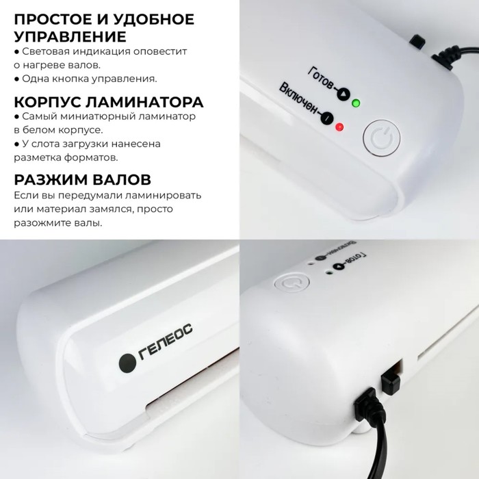 Ламинатор A4 60-250 мкм, 4 вала, скорость 62 см/мин, Гелеос "ЛМ_А4Про"