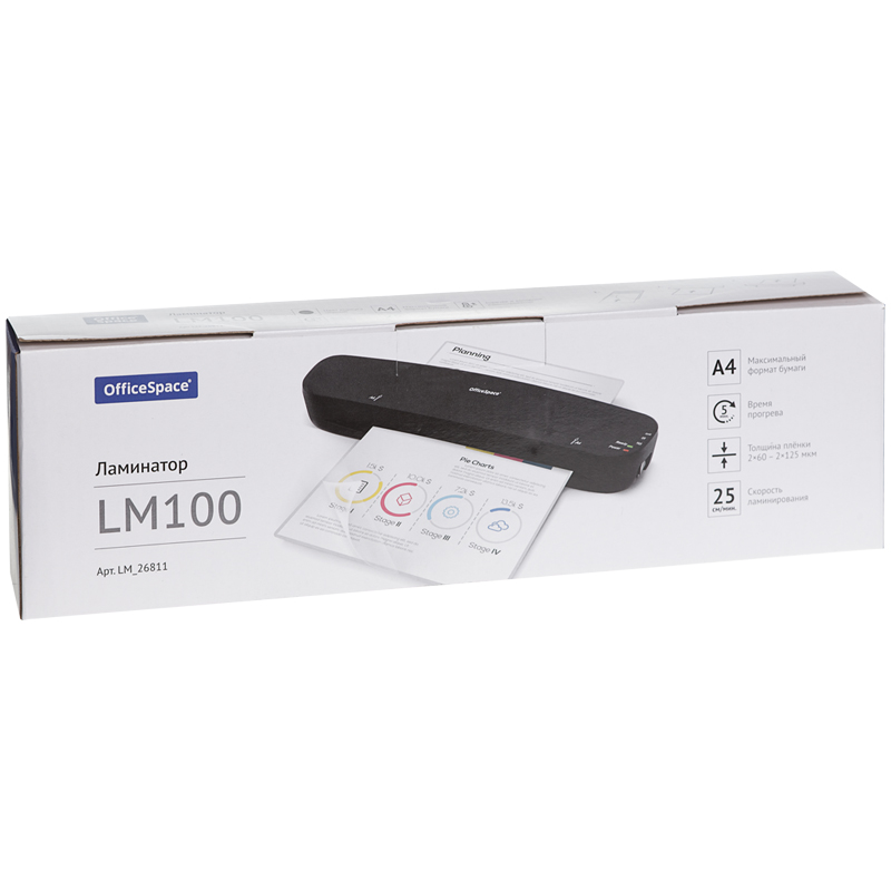 Ламинатор OfficeSpace LM100 предназначен для ламинирования бумаги, фотографий, документов, грамот, сертификатов, пропусков с целью сохранения от влаги, пыли и прочих внешних воздействий в течение длительного времени. Данный ламинатор предназначен для ламинирования Вам небольшого количества документов в условиях дома, небольшого офиса или фотостудии. Функция холодного ламинирования позволит надежно нанести самоклеящуюся пленку на бумагу, а ABS релиз поможет предотвратить замятие документов.<br/><br/>Причина уценки: механические повреждения упаковки.