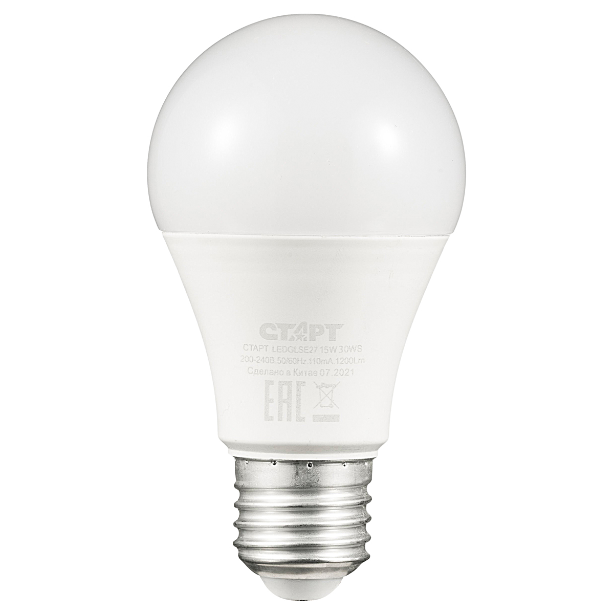 Лампа светодиодная Старт LED, серия "WS" 15W40, тип А "груша", E27, 4000К, нейтральный свет, 25000ч