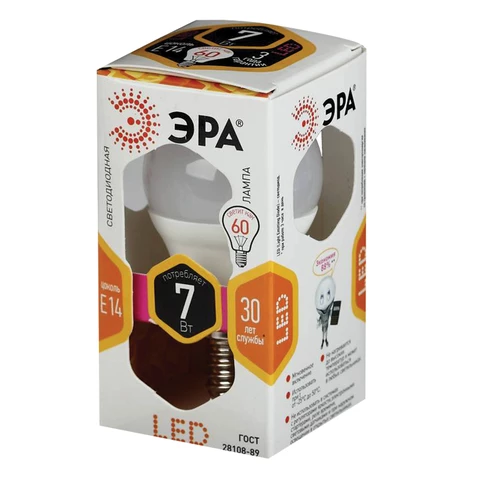 Светодиодная лампа ЭРА LED smdP45-7w-827-E14 предназначена для бытового и коммерческого освещения помещений различного назначения. Благодаря своей компактной форме и небольшому весу идеально подходит для установки в светильники с патроном E14.