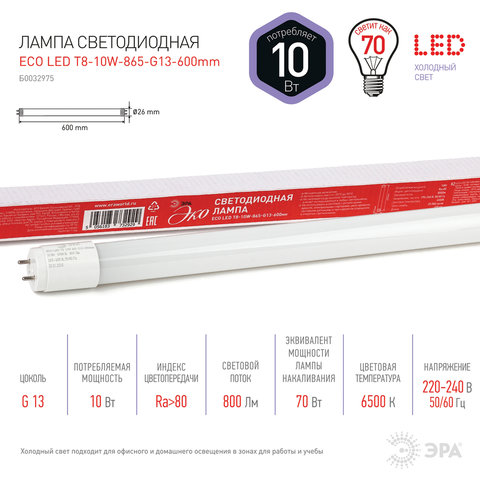 Лампа-трубка светодиодная SONNEN EXTRA, 9 (18) Вт, 30000 ч, 60 см, холодный белый, LED T8-9W-6500-G13, 457938