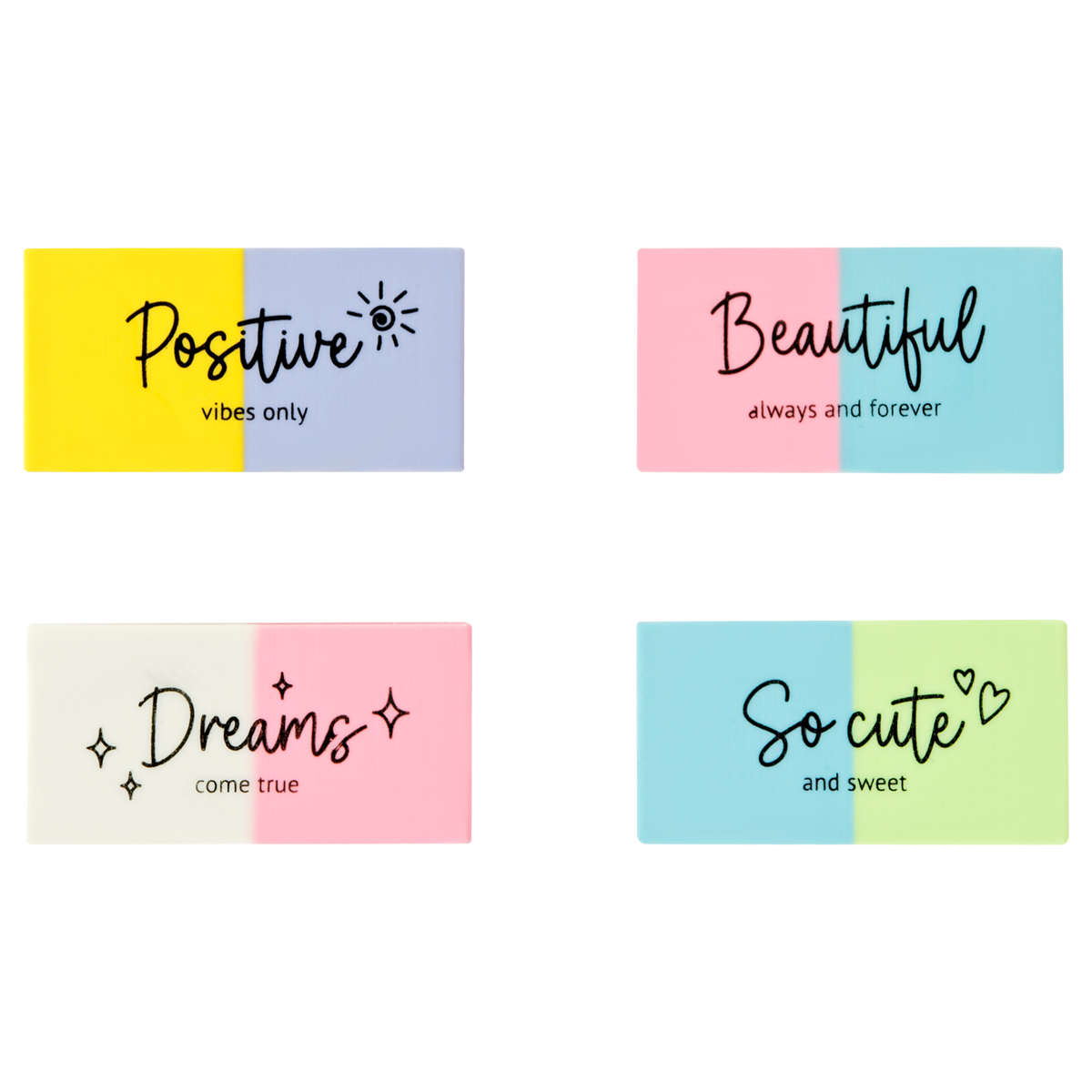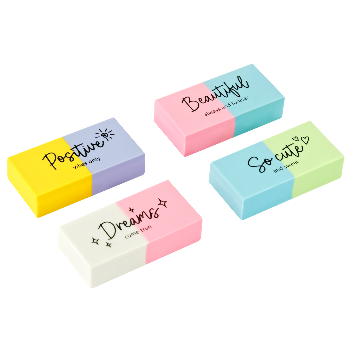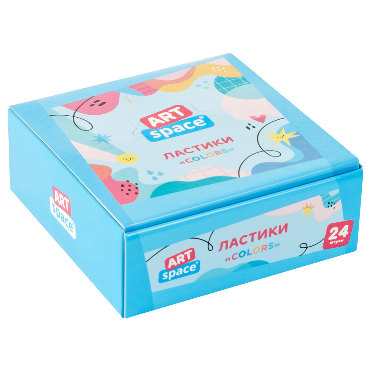 Яркие двухцветные ластики в красочном дисплей-боксе. Микс цветов. Каждый ластик имеет штрихкод.