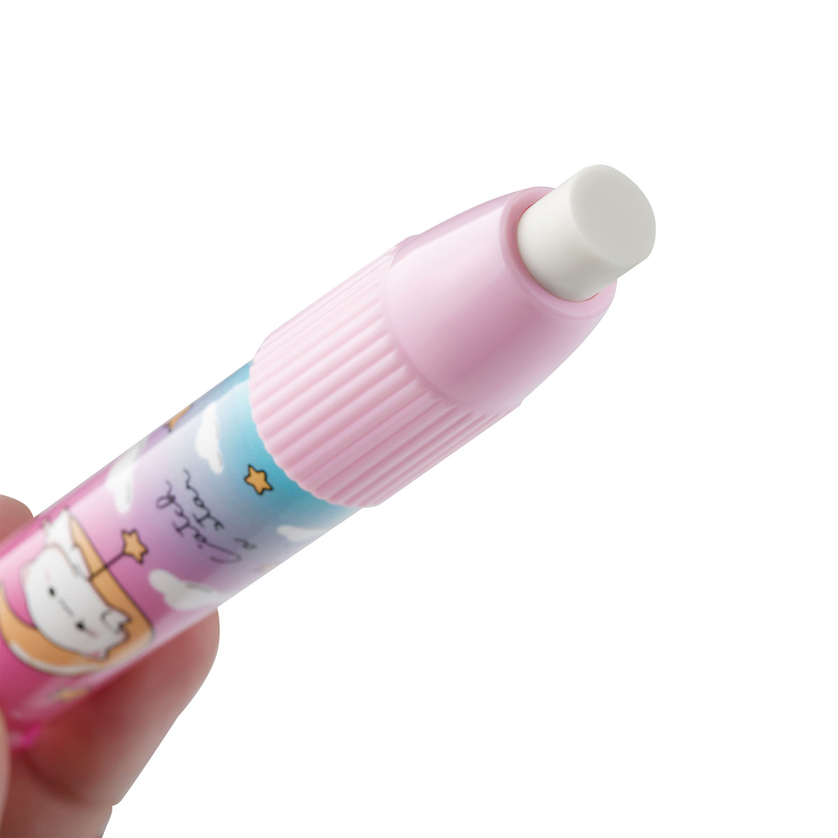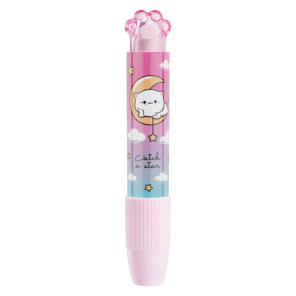 Ластик MESHU "Meow" — забавный помощник в школе, офисе и дома. Изделие представлено в милом пластиковом корпусе в форме лапки, который эстетично выглядит в течение всего срока использования. Ластик изготовлен из термопластичной резины и отлично стирает чернографитный карандаш. Специальный механизм позволяет выдвигать ластик по мере его расхода. Изделие поставляется в индивидуальном опп-пакете с европодвесом.