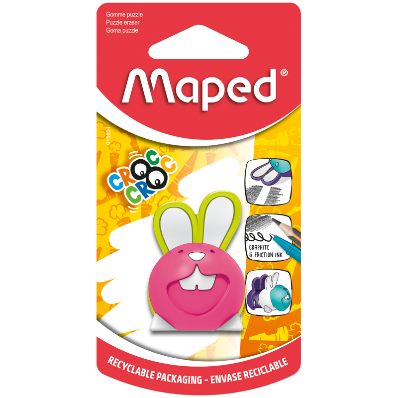 Ластик-пазл Maped "Сroc Croc Puzzle Bunny", для точного стирания, для ч/г карандашей и термочувствительных чернил, ассорти, в блистере. <br/>Точное стирание, благодаря заостренным частям ластика