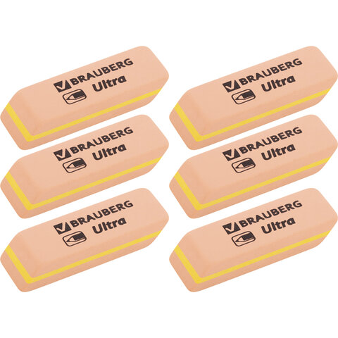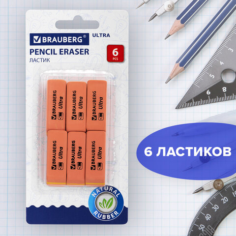 Ластики BRAUBERG "Ultra" предназначены для удаления надписей, сделанных чернографитным карандашом.
