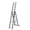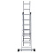 Широкая поперечная траверса обеспечивает высокую устойчивость, а надёжно закреплённые на стойках и траверсе пластиковые наконечники препятствуют скольжению. Верхняя секция легко вынимается и устанавливается и может служить отдельной приставной лестницей.