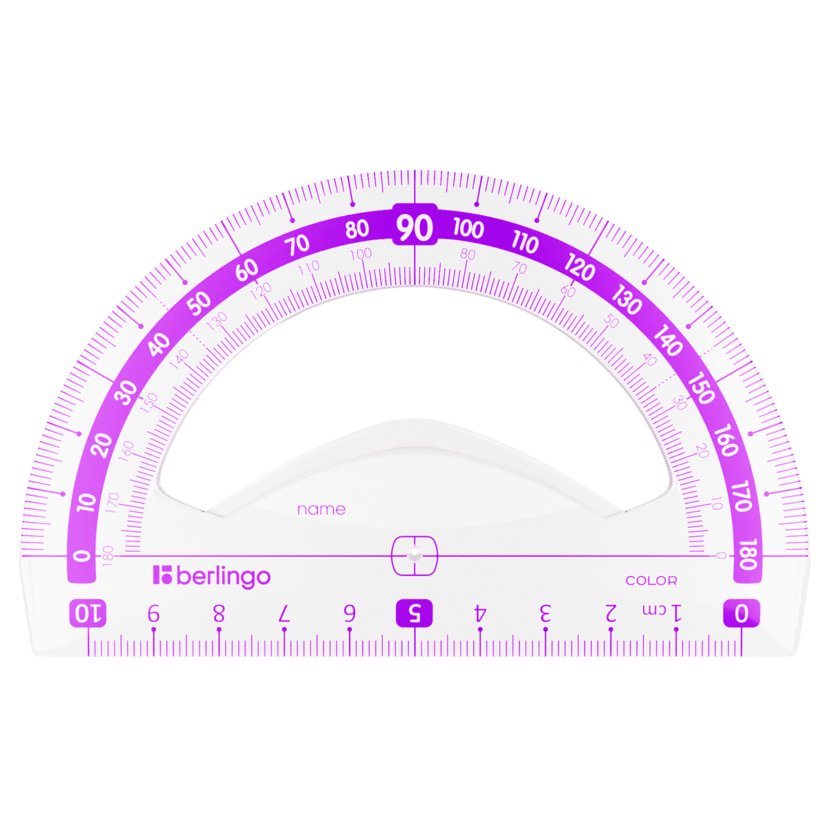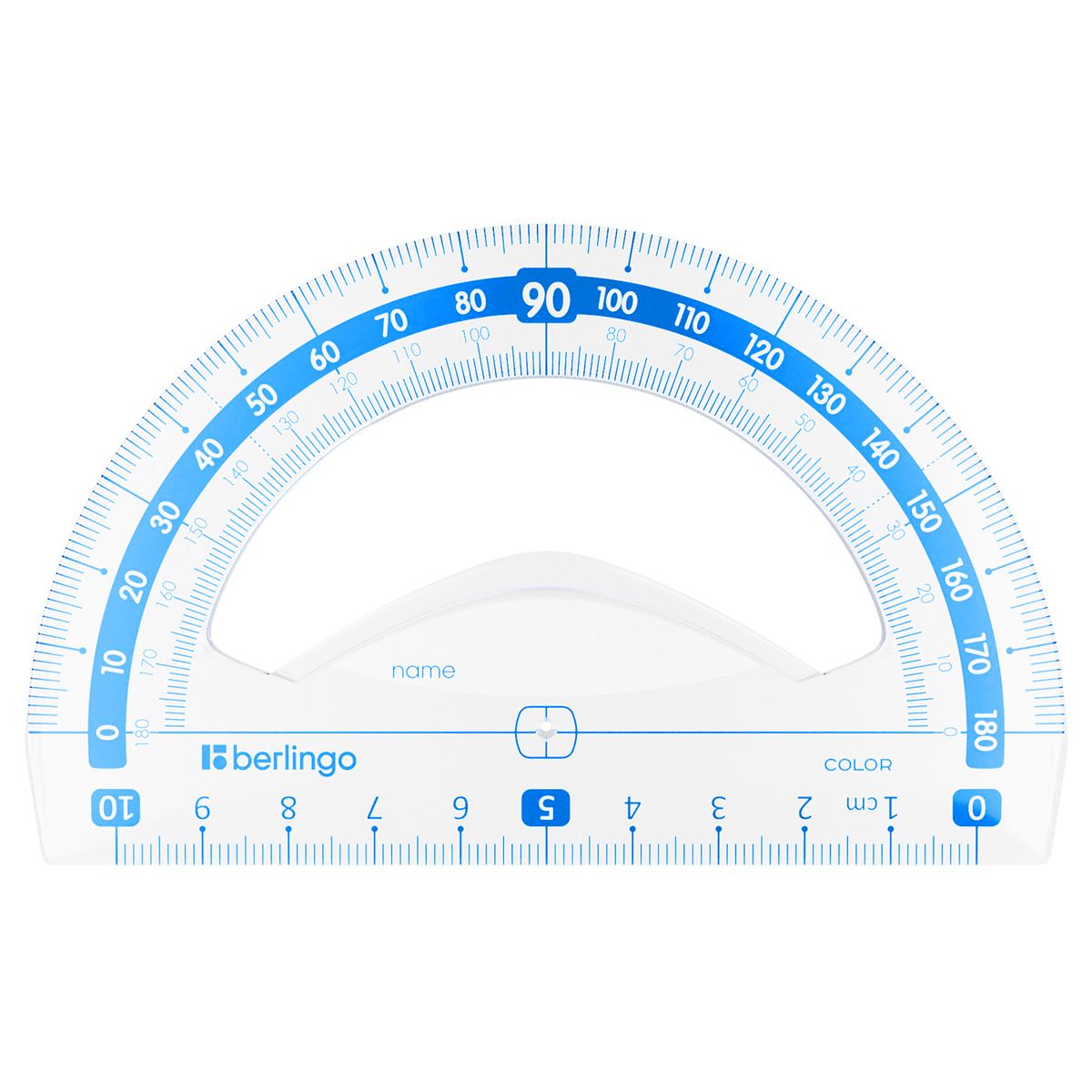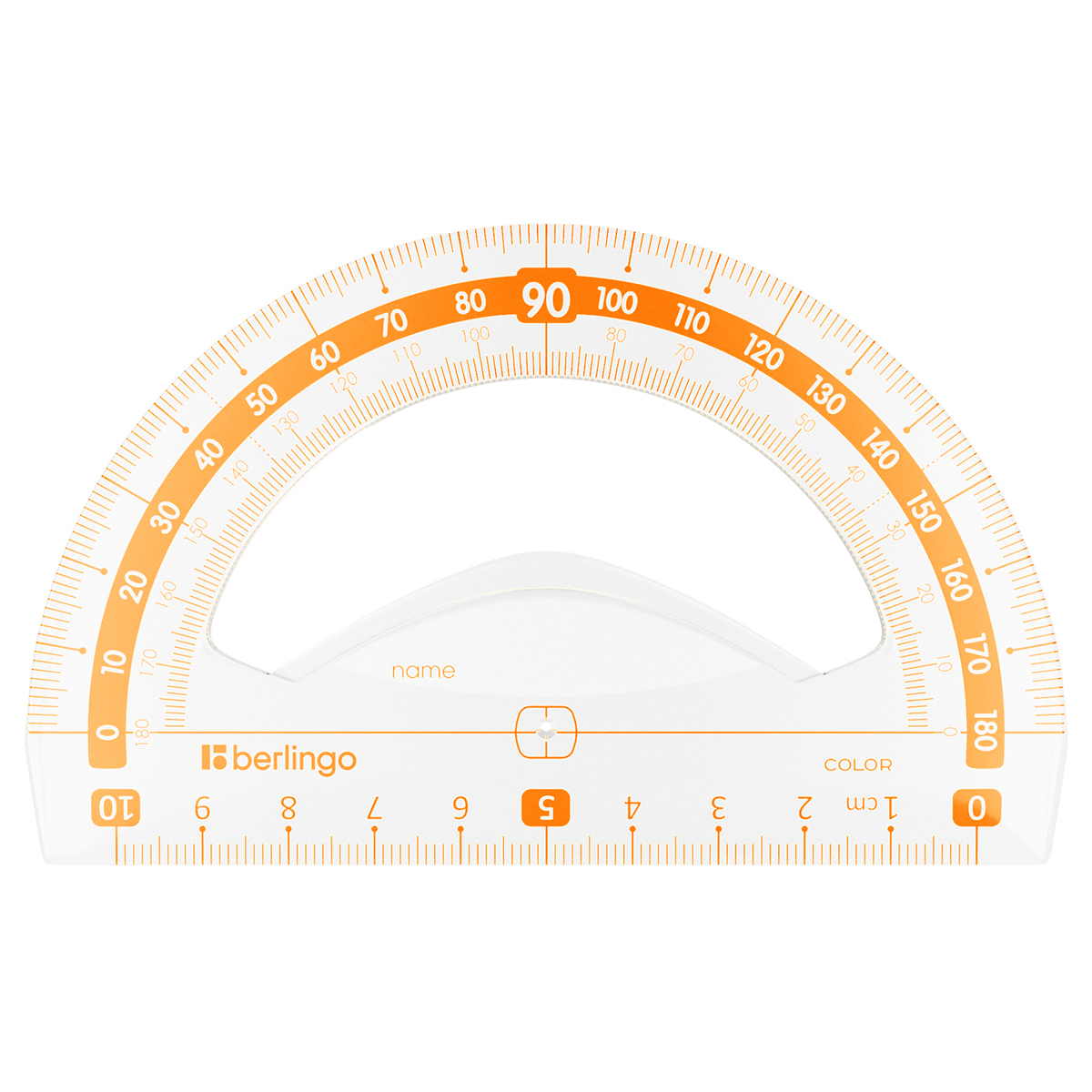 Транспортир пластиковый, 10 см, 180°, безопасные закругленные края, высококачественная градуировка с использованием УФ-чернил. Индивидуальная упаковка в пакет с европодвесом.