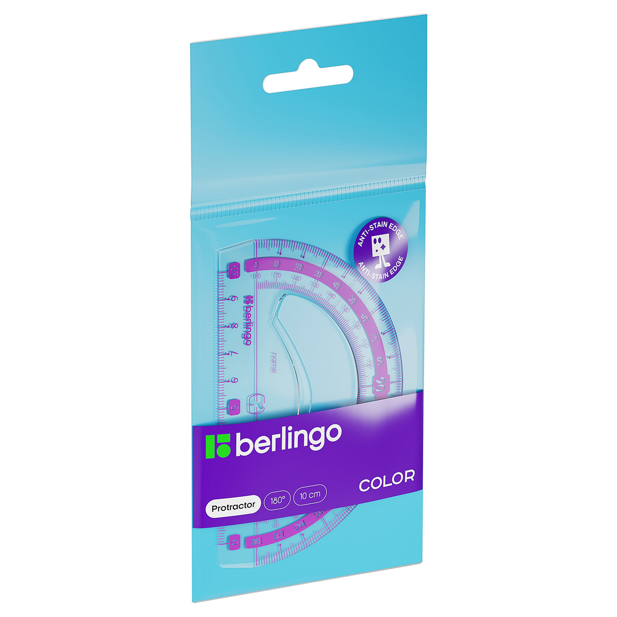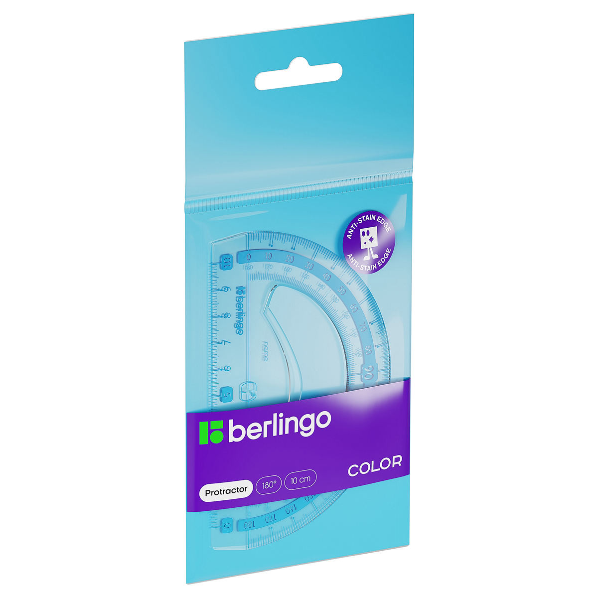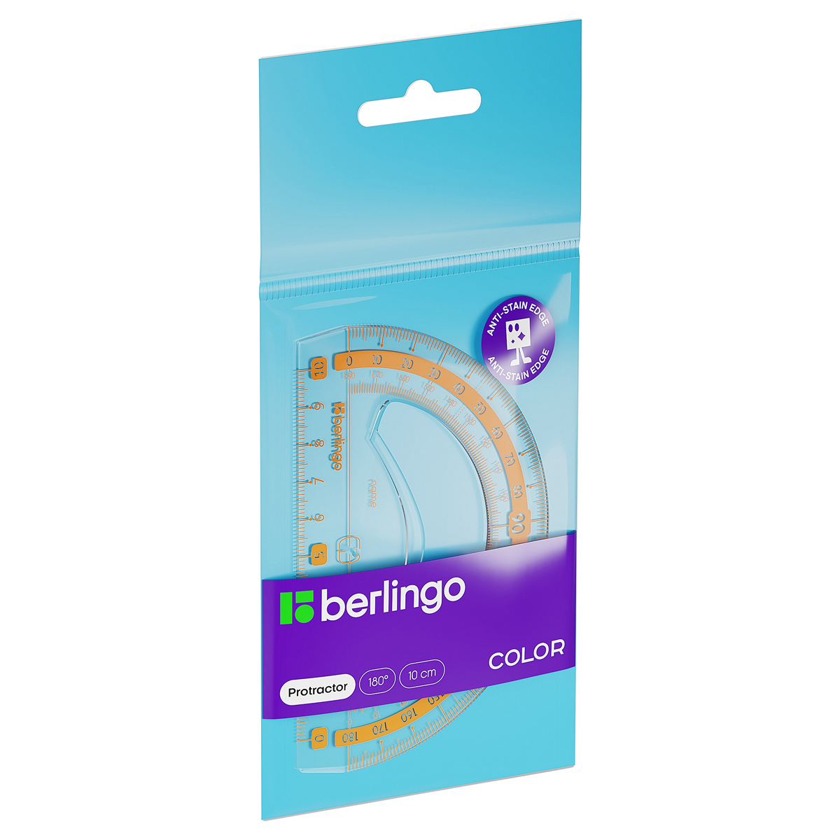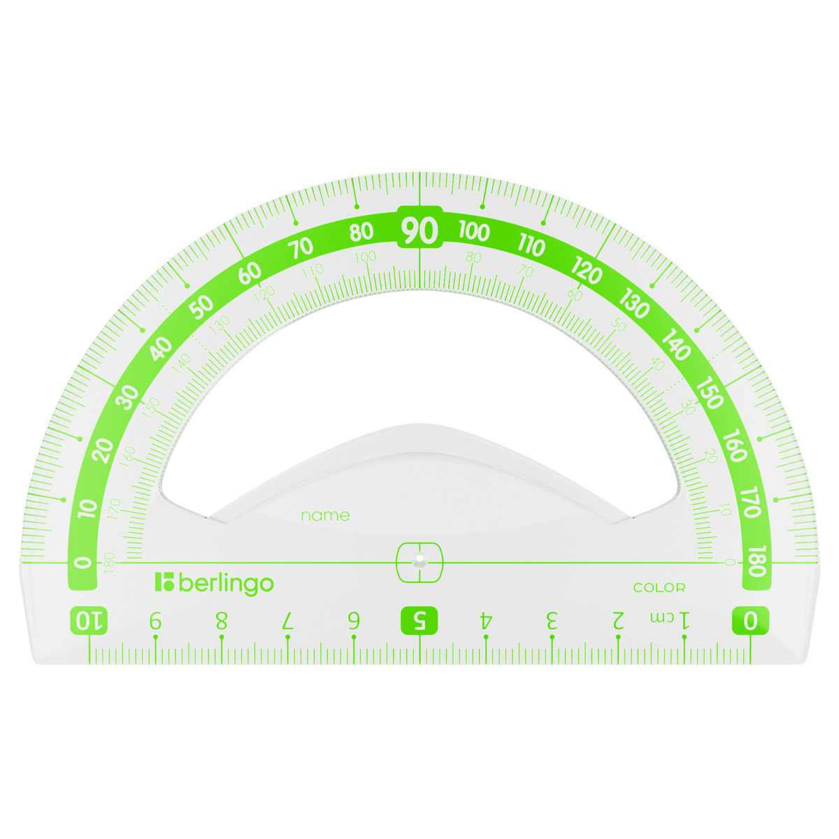 Транспортир пластиковый, 10 см, 180°, безопасные закругленные края, высококачественная градуировка с использованием УФ-чернил. Индивидуальная упаковка в пакет с европодвесом.