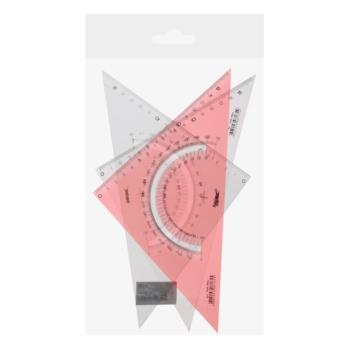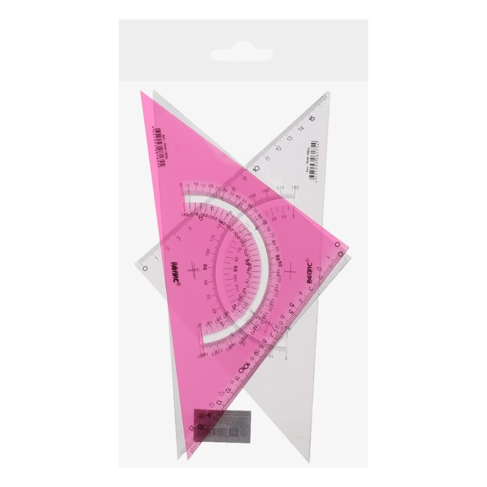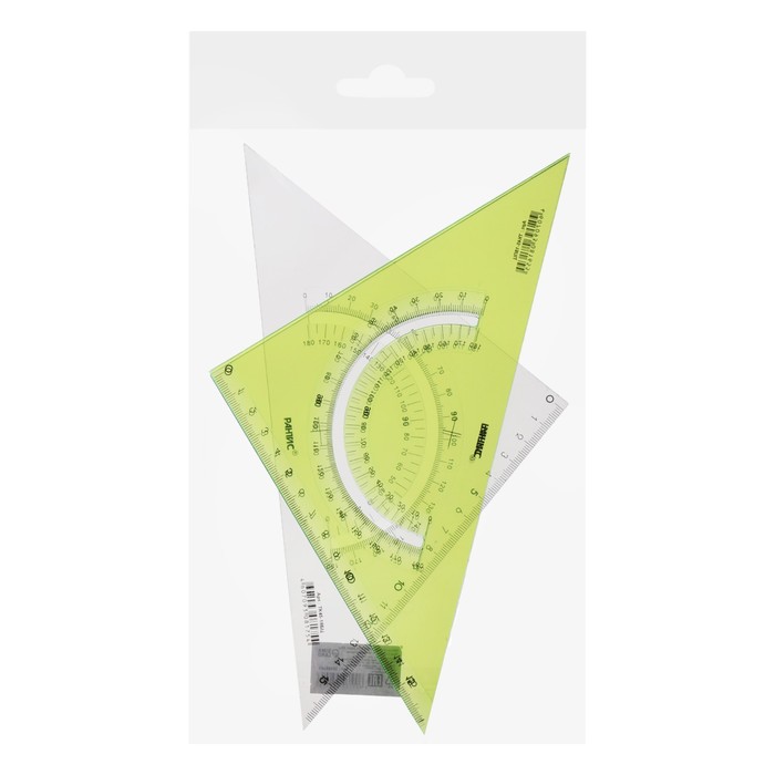 Набор геометрический пластик (линейка 20см+2 угольника+транспортир) Пиксели