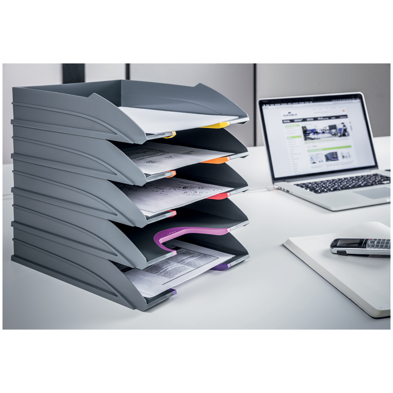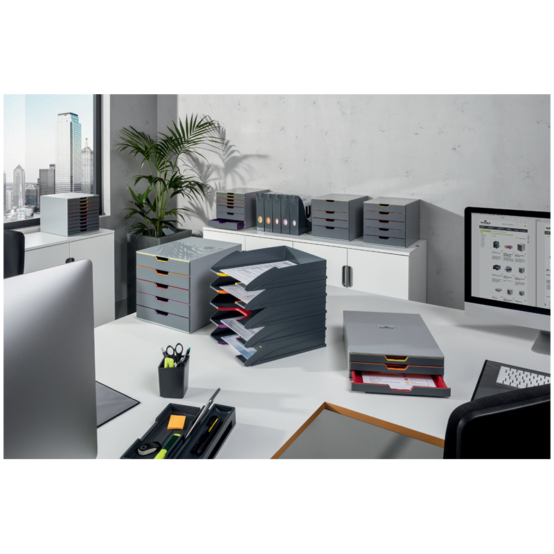 Набор горизонтальных лотков VARICOLOR TRAY SET<br/>• 5 горизонтальных лотков для документов<br/>• устанавливаются друг на друга как под прямым углом, так и лесенкой<br/>• яркие цветные вставки в зоне захвата документов<br/>• цвет - эффективный инструмент работы с бумагами, их группирования по категориям и быстрого поиска<br/>• высококачественный ABS-пластик<br/>• размер одного лотка: 255 х 55 х 330 мм (Ш х В х Г)