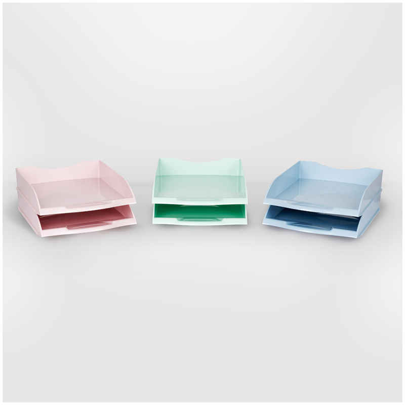Горизонтальный лоток для хранения бумаг MESHU в стильном современном дизайне нежного голубого цвета. Изготовлен из полистирола. Лотки могут устанавливаться один на другой.