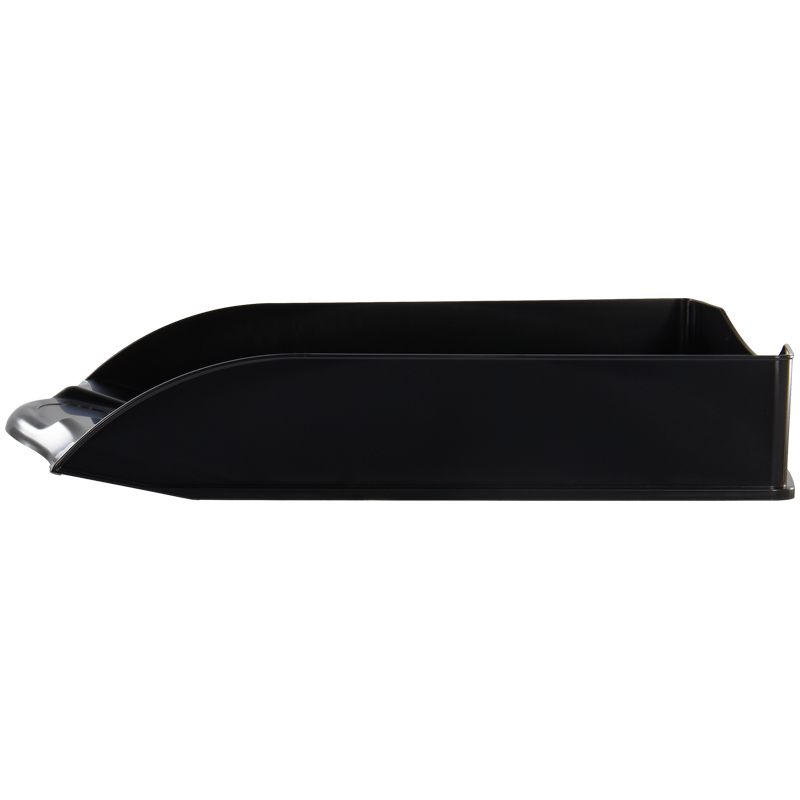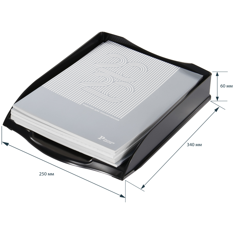 Горизонтальный лоток для хранения бумаг формата А4 представлен в стильном современном дизайне. Корпус представлен в черном цвете. Лотки могут устанавливаться один на другой.