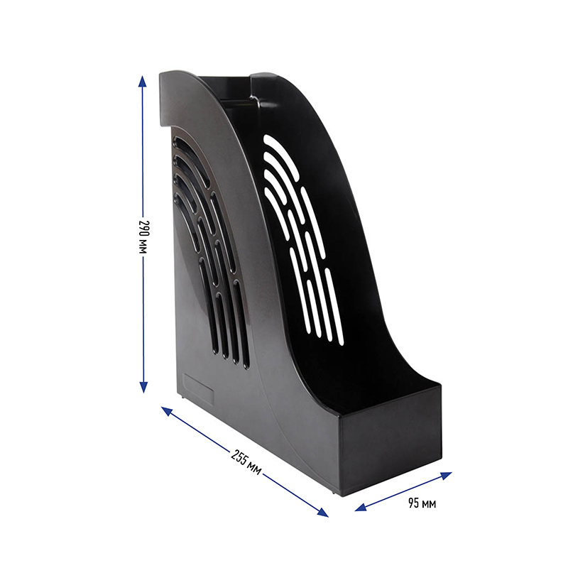 Экологичный материал – полистирол<br/> размер лотка – 255*290*95 мм,<br/>современный, оригинальный дизайн, плавные линии<br/>сочетание матовой и глянцевой поверхности,<br/>окошко для информационной этикетки,<br/>фирменная сменная табличка для маркировки в комплекте ,<br/>устойчивый, подходит для хранения тяжёлых папок и каталогов.