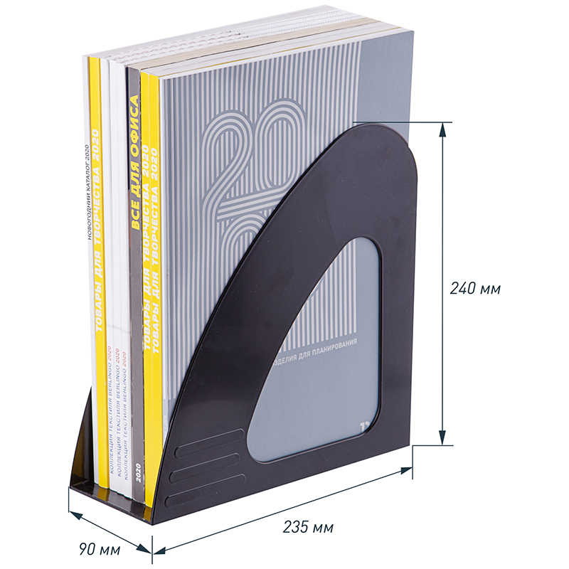 Вертикальный накопитель для бумаг в стильном современном дизайне. Благодаря ширине 90 мм лоток подойдет для хранения толстых книг, журналов и каталогов. Корпус изготовлен из экологичного полистирола и представлен в черном цвете.