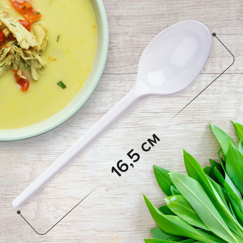 Ложка столовая одноразовая полипропиленовая 173 мм, белая, ПРЕМИУМ, ВЗЛП, 4033Б
