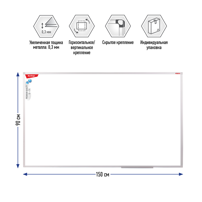 Доска магнитно-маркерная Berlingo Premium качества, 90*150 мм. Увеличеннная толщина магнитно-маркерной поверхности, ДВП основа. Полочка для аксессуаров и комплект креплений - в комплекте. Индивидульно упакована в пленку, в коробке - 1 штука. Гарантия на магнитно-маркерную поверхность - 10 лет.