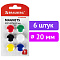 Диаметр магнита составляет 20 мм. 6 штук в комплекте. Надежно удерживаются на любой железной или стальной поверхности. Магниты круглой формы выполнены из пластика цветов ассорти. Поставляются в удобной блистерной упаковке с европодвесом.
