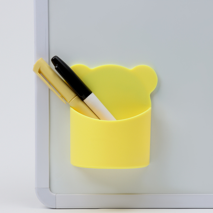 Магнитная универсальная подставка для маркеров и губок "Мишка" жёлтый цвет 4х9х10см