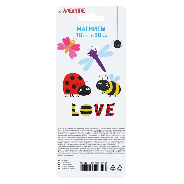 Набор магниты для доски d-3,5см, 10 штук, на блистере, пастель