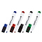 В наборе 4 маркера для доски, заправленные чернилами черного, красного, синего и зеленого цвета. Колпачок маркера оснащен магнитом для крепления к любой металлической поверхности и губкой для быстрой корректировки текста во время написания. Наконечник круглой формы обеспечивает толщину линии письма 3 мм, что позволяет писать крупным шрифтом, который будет хорошо виден. Основа чернил - спиртовая. Чернила быстро высыхают и не оставляют разводов, легко стираются подушечкой, закрепленной на колпачке или специальным стирателем для магнитно-маркерных досок. Изделие не перезаправляется. Цвет колпачка соответствует цвету чернил.