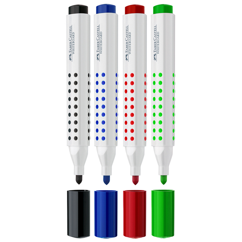 Маркер для белой доски Grip 1583 от легендарного немецкого производителя Faber-Castell. Удобен при долгом использовании благодаря эргономичной треугольной форме корпуса с запатентованным объемным покрытием Grip. Чернила быстро высыхают на поверхности доски, имеют высокую светостойкость и легко стираются без остатка. Имеет прочный пулевидный наконечник 2 мм. Набор состоит из 4 маркеров разных цветов.