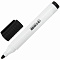 Маркер для доски черного цвета обладает круглым пластиковым корпусом диаметром 15 мм. Наконечник круглой формы обеспечивает толщину линии письма 3 мм, что позволяет писать крупным шрифтом, который будет хорошо виден. Основа чернил - спиртовая. Чернила быстро высыхают и не оставляют разводов, легко стираются сухой губкой. Изделие не перезаправляется. Цвет колпачка с клипом соответствует цвету чернил.