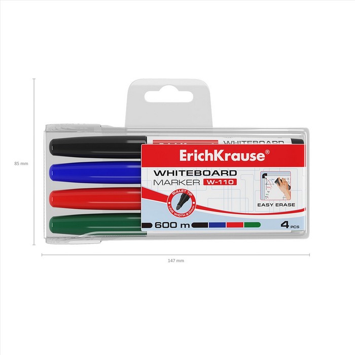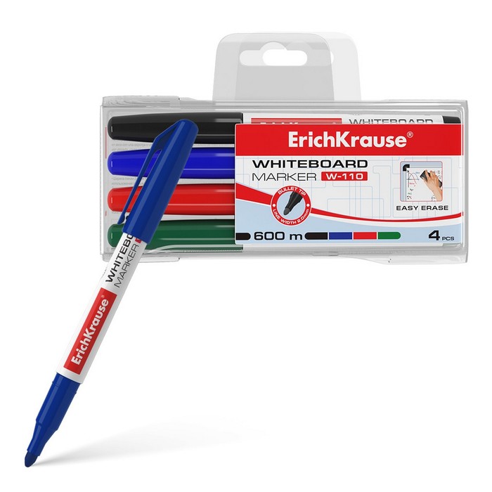Маркер для доски ErichKrause W-110, 2,0 мм, для письма на досках сухого стирания, чернила на спиртовой основе без ксилола, синий