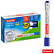 Прочный фибровый наконечник не западает в корпус и сохраняет форму на протяжении всего срока службы. След от маркера легко удаляется сухой губкой. Пулевидный наконечник позволяет наносить яркие и однородные линии толщиной 1-3 мм. Цвет чернил - синий. Упаковка: картонная коробочка по 12 штук.