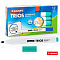 Эргономичный маркер для белых досок Luxor "Trios" предназначен для использования на досках с магнитно-маркерной и на других непористых поверхностях: стекло, фарфор, пленка. <br/>Трехгранный эргономичный корпус комфортно лежит в руке. Благодаря особому строению пишущего узла чернила дозированно поступают на поверхность, не вытекают из наконечника и не образуют клякс. Чернила на спиртовой основе высыхают на поверхности доски в течении 1-2 секунд. Маркер до 2 дней не высыхает без колпачка, а при закрытом колпачке в течении одного часа полностью восстанавливает свои свойства!<br/>Прочный фибровый наконечник не западает в корпус и сохраняет форму на протяжении всего срока службы маркера. След от маркера легко удаляется сухой губкой. Длина линии письма - до 700 метров. Пулевидный наконечник позволяет наносить яркие и однородные линии толщиной 2.5 мм. Цвет чернил - зеленый. Упаковка: картонная коробочка по 12 штук.