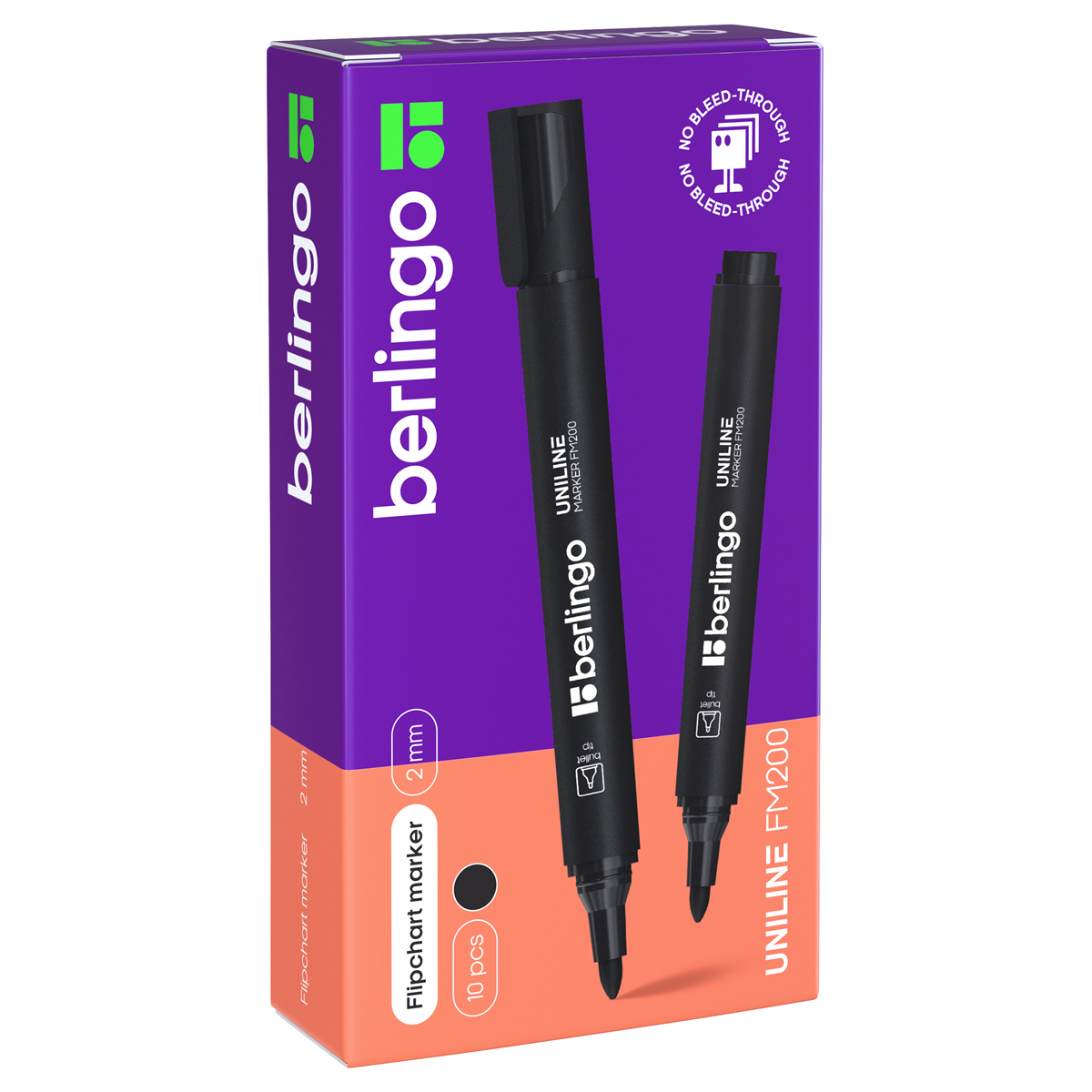 Предназначен для письма на бумажных блоках для флипчартов. Благодаря специальной формуле не допускает просачивания чернил на следующие за рабочим листы даже при пятикратном нанесении на одно место. Закругленный пишущий узел. Ширина линии - 2 мм. Длина непрерывной линии - 600 м. Плотный колпачок с клипом предотвращает высыхание. Цвет колпачка соответствует цвету чернил. Упаковка в картонную коробку по 10 шт.
