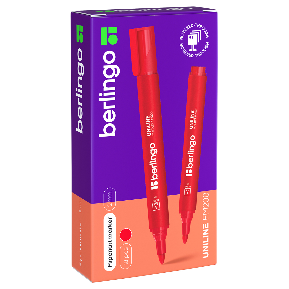 Предназначен для письма на бумажных блоках для флипчартов. Благодаря специальной формуле не допускает просачивания чернил на следующие за рабочим листы даже при пятикратном нанесении на одно место. Закругленный пишущий узел. Ширина линии - 2 мм. Длина непрерывной линии - 600 м. Плотный колпачок с клипом предотвращает высыхание. Цвет колпачка соответствует цвету чернил. Упаковка в картонную коробку по 10 шт.