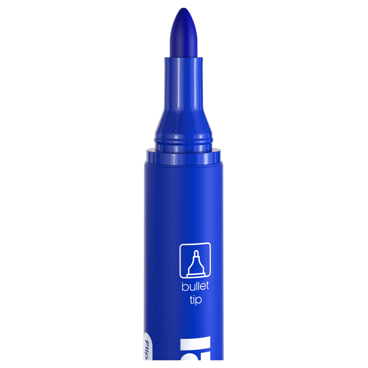 Предназначен для письма на бумажных блоках для флипчартов. Благодаря специальной формуле не допускает просачивания чернил на следующие за рабочим листы даже при пятикратном нанесении на одно место. Закругленный пишущий узел. Ширина линии - 2 мм. Длина непрерывной линии - 600 м. Плотный колпачок с клипом предотвращает высыхание. Цвет колпачка соответствует цвету чернил. Упаковка в картонную коробку по 10 шт.