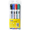 Набор маркеров предназначен для письма на магнитно-маркерных досках. Закругленный пишущий узел. Толщина линии 2,5 мм. Набор упакован в ПВХ чехол. В наборе 4 цвета: красный, синий, зеленый, черный. Чернила на спиртовой основе легко стираются сухой губкой для досок. Хранить с закрытым колпачком.