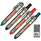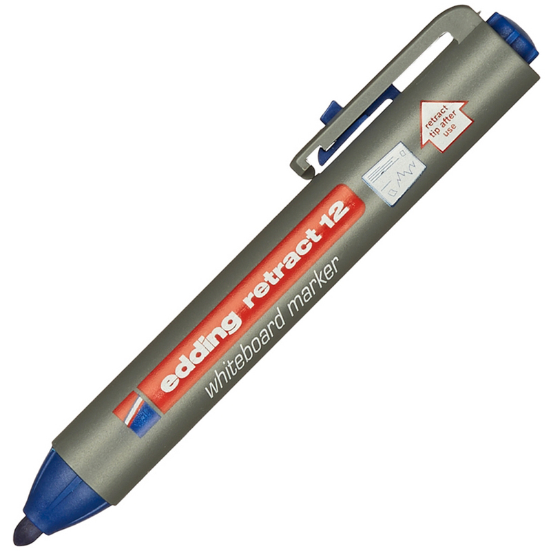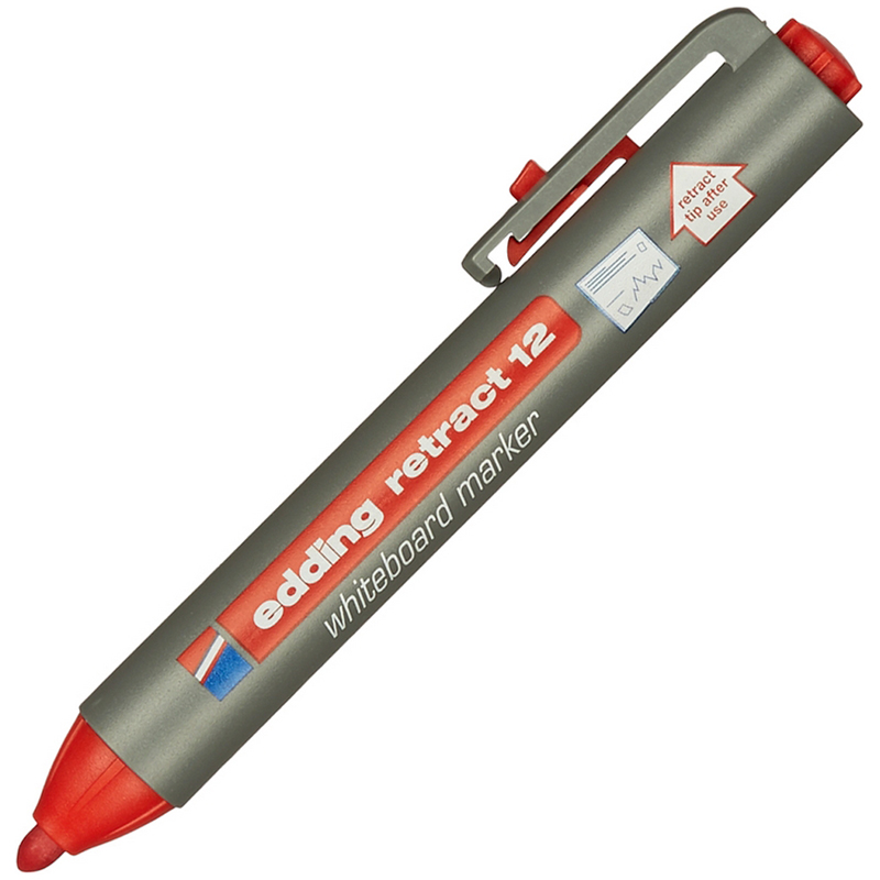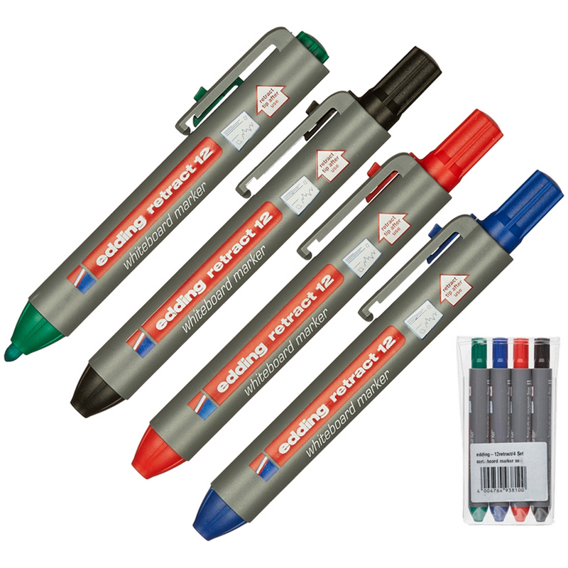 Набор маркеров eddig Куекфсе 12 для белых. Маркеры снабжены кнопочным механизмом подачи наконечника, которым можно управлять лишь одной рукой, как и в случае с шариковой ручкой. Круглый наконечник появляется только после нажатия кнопки. Чернила можно легко и без остатка удалить сухой тканью с любой белой доски. Его чернила также хорошо ложатся на другие непористые поверхности, например, эмалированные, стеклянные или меламиновые. Чернила быстросохнущие практически без запаха.