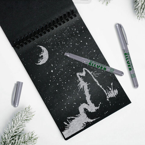 Маркеры для декорирования и рисования ЗОЛОТО и СЕРЕБРО, METALLIC MARKER, линия письма 1-2 мм, BRAUBERG, 152655