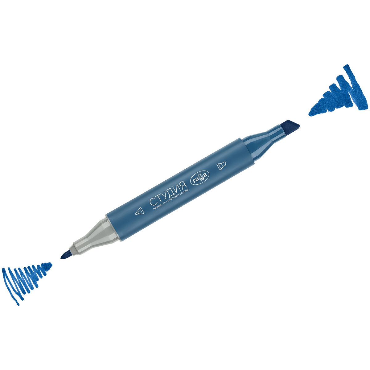 Маркер для скетчинга двусторонний ГАММА серии «Студия» – выбор профессионалов, любителей и начинающих художников, дизайнеров и иллюстраторов. Цвет – синий восточный. Перманентные чернила на спиртовой основе не токсичны и быстро сохнут на поверхности, оставляя яркий след. Маркер на спиртовой основе имеет два наконечника: пулевидный с шириной линии 1 мм и долото (клиновидный) 2-6 мм. Пулевидный наконечник подойдет для прорисовки деталей, работ в различных графических техниках, создания текстур и проработки контуров. Клиновидный наконечник идеален для работ на больших поверхностях и тех, кто занимается каллиграфическими техниками, так как он позволяет варьировать ширину линии. Маркеры для рисования мягко ложатся на поверхность, создавая ровный цвет без разводов. Цвета отлично смешиваются между собой, образуют плавные переходы и новые оттенки. Маркерами можно рисовать на бумаге, холсте и других поверхностях. Трехгранный матовый корпус диаметром 1, 55 мм из полипропилена нежно-голубого цвета легкий и ударопрочный. Плотно защелкивающийся колпачок обеспечивает долгую сохранность чернил от высыхания. Также на нём указан номер цвета. Маркеру не страшны морозы, так как спирт замерзает только при температуре –114 °C.