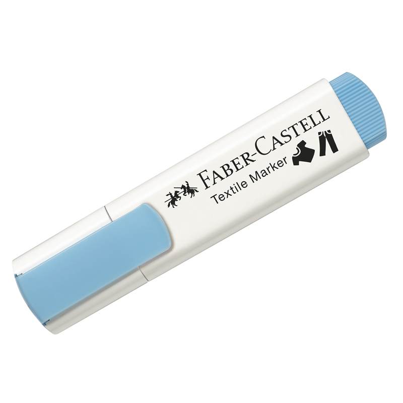 Перманентный маркер для ткани Textile от легендарного немецкого производителя Faber-Castell имеет толщину линии 1-5 мм, скошенную форму наконечника и диаметр корпуса 24*13 мм. Подходит для различных видов тканей: от хлопковых сумок и футболок, до интерьерных тканей. Идеален для дизайнеров по текстилю. Цвета автоматически закрепляются через 24 часа, или после глажки. Не смазывается при стирке 40°C (в зависимости от типа ткани и содержания натуральных волокон). Ручная стирка должна быть более бережной. Текстовыделитель представлен в голубом цвете чернил. Товар имеет прямоугольную форму корпуса и водостойкие пигментированные чернила на водной основе.<br/>• Вид товара: маркер;<br/>• Тип наконечника: скошенный;<br/>• Форма корпуса: прямоугольная;<br/>• Цвет: голубой;<br/>• Толщина линии: 1-5 мм;<br/>• Диаметр корпуса: 24*13 мм;<br/>• Назначение: для текстиля.