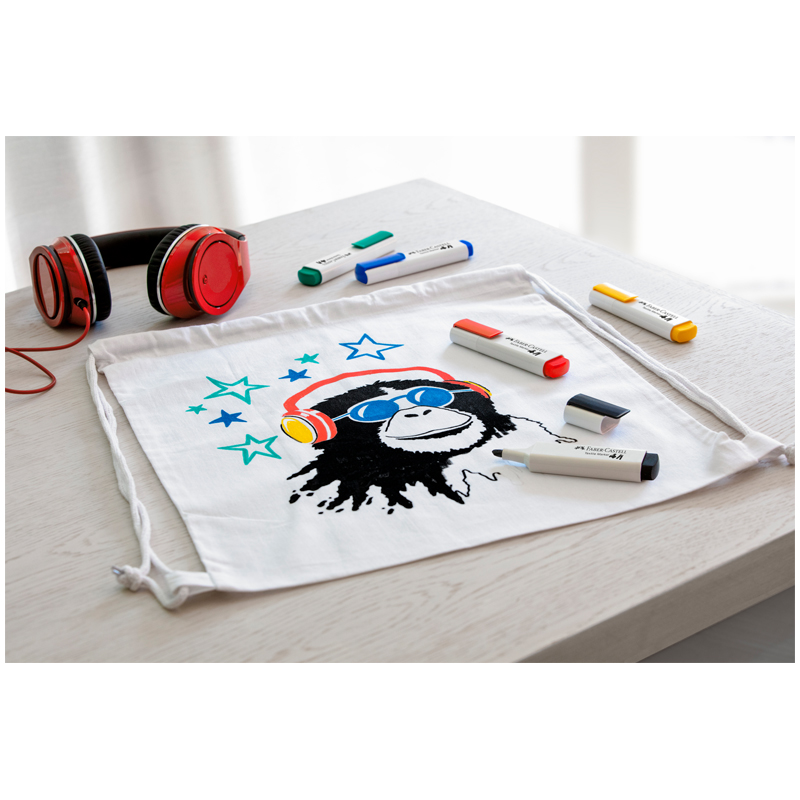Перманентный маркер для ткани Textile от легендарного немецкого производителя Faber-Castell имеет толщину линии 1-5 мм, скошенную форму наконечника и диаметр корпуса 24*13 мм. Подходит для различных видов тканей: от хлопковых сумок и футболок, до интерьерных тканей. Идеален для дизайнеров по текстилю. Цвета автоматически закрепляются через 24 часа, или после глажки. Не смазывается при стирке 40°C (в зависимости от типа ткани и содержания натуральных волокон). Ручная стирка должна быть более бережной. Текстовыделитель представлен в красном цвете чернил. Товар имеет прямоугольную форму корпуса и водостойкие пигментированные чернила на водной основе.