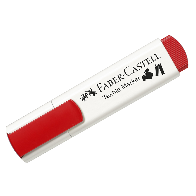 Перманентный маркер для ткани Textile от легендарного немецкого производителя Faber-Castell имеет толщину линии 1-5 мм, скошенную форму наконечника и диаметр корпуса 24*13 мм. Подходит для различных видов тканей: от хлопковых сумок и футболок, до интерьерных тканей. Идеален для дизайнеров по текстилю. Цвета автоматически закрепляются через 24 часа, или после глажки. Не смазывается при стирке 40°C (в зависимости от типа ткани и содержания натуральных волокон). Ручная стирка должна быть более бережной. Текстовыделитель представлен в красном цвете чернил. Товар имеет прямоугольную форму корпуса и водостойкие пигментированные чернила на водной основе.<br/>• Вид товара: маркер;<br/>• Тип наконечника: скошенный;<br/>• Форма корпуса: прямоугольная;<br/>• Цвет: красный;<br/>• Толщина линии: 1-5 мм;<br/>• Диаметр корпуса: 24*13 мм;<br/>• Назначение: для текстиля.