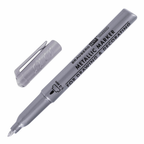 Маркеры для декорирования и рисования ЗОЛОТО и СЕРЕБРО, METALLIC MARKER, линия письма 1-2 мм, BRAUBERG, 152655