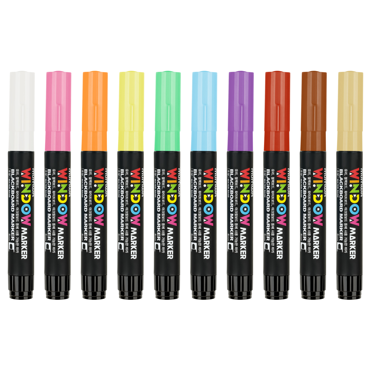 Набор меловых маркеров для декорирования MunHwa Window станет незаменимым помощником для воплощения всех креативных решений в жизнь. Он предназначен для стеклянных и любых гладких (непористых) поверхностей. MunHwa Window – жидкий мел на водной основе. В наборе 10 ярких цветов: белый, голубой, неоновый зеленый, неоновый розовый, неоновый оранжевый, неоновый желтый, фиолетовый, алый, терракотовый, светло бежевый.