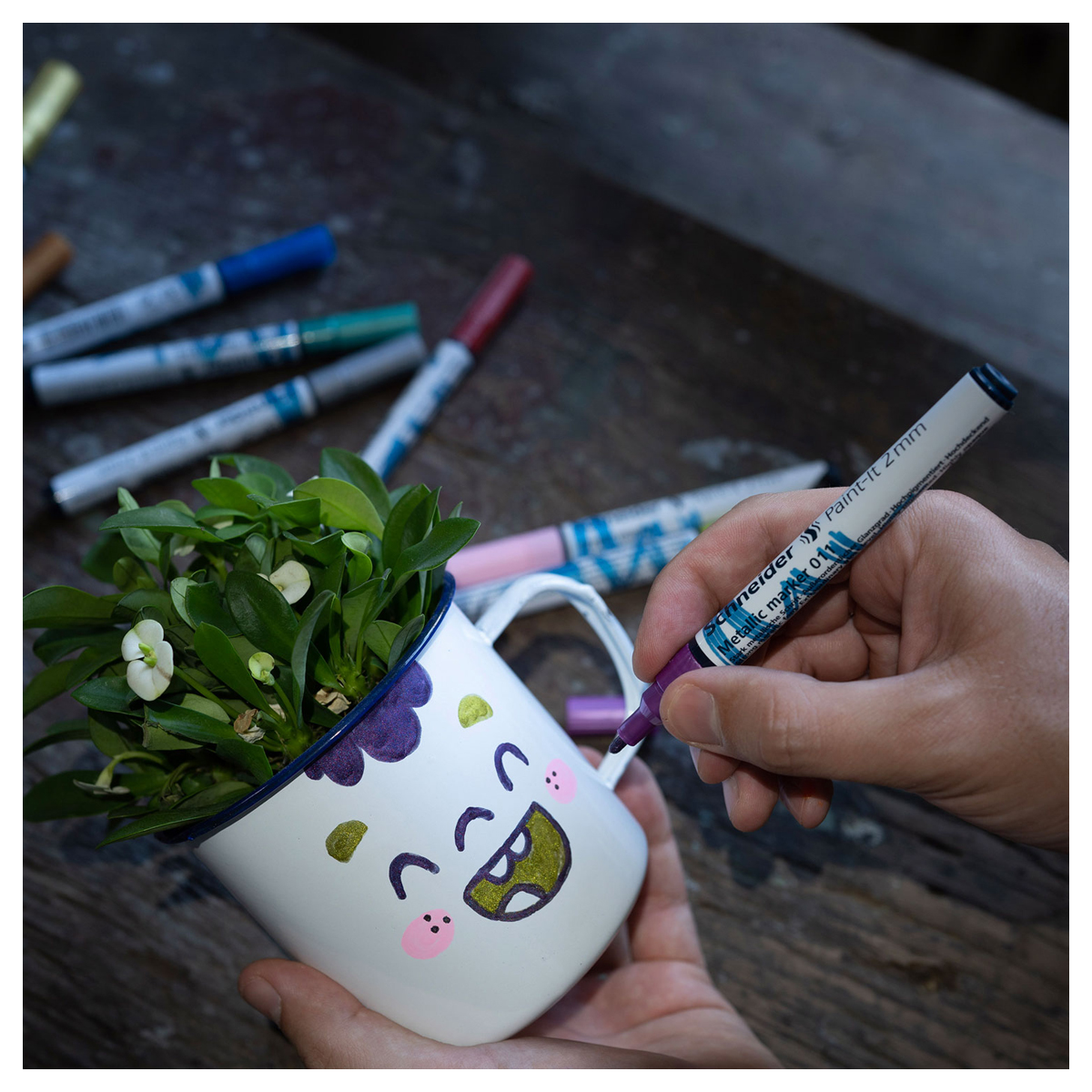 Набор маркеров Schneider Paint-It 010 с чернилами металлик для создания необычных эффектов. Тонкий наконечник, толщина линии: 0,8 мм. В наборе несколько цветов: золотой, серебряный, бронзовый, фиолетовый. Новая технология пигментов обеспечивает чистое и однородное нанесение цвета. Интенсивный эффект металлик достигается за счёт алюминиевых частиц, покрытых цветными пигментами. Пригоден для письма на большинстве поверхностей, наилучшие результаты видны на тёмных и невпитывающих поверхностях.