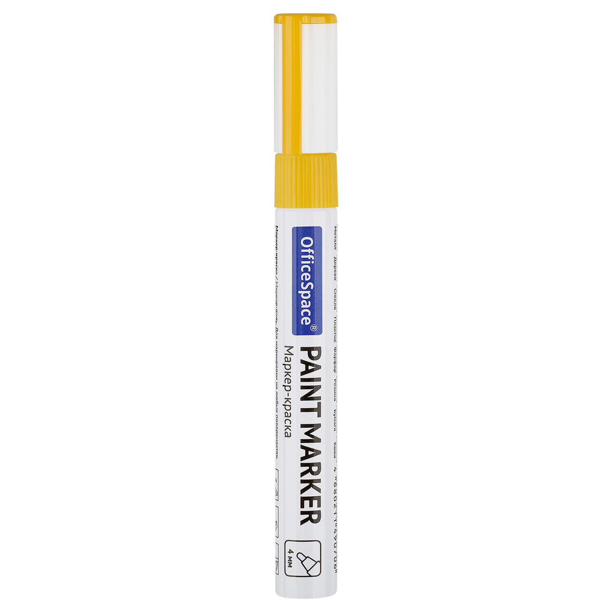 Маркер-краска OfficeSpace с чернилами на нитро-основе подходит для использования на металлических, деревянных, стеклянных и пластиковых поверхностях. Цвет – жёлтый. Закругленный пишущий узел оставляет линии шириной 1-4 мм. Длина непрерывной линии – 600 метров. Металлический корпус. Маркеры упакованы по 12 штук в картонную коробку, которую можно использовать в качестве мини-витрины. <br/>• Тип: маркер-краска;<br/>• Основа: нитро;<br/>• Толщина линии: 1-4 мм;<br/>• Цвет: жёлтый.