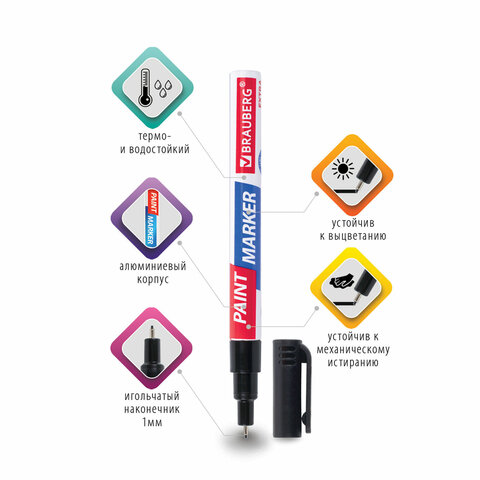 Маркер-краска лаковый BRAUBERG EXTRA предназначен для маркировки на различных поверхностях: бетон, дерево, стекло, металл, резина, пластик как в промышленных, так и в бытовых целях.