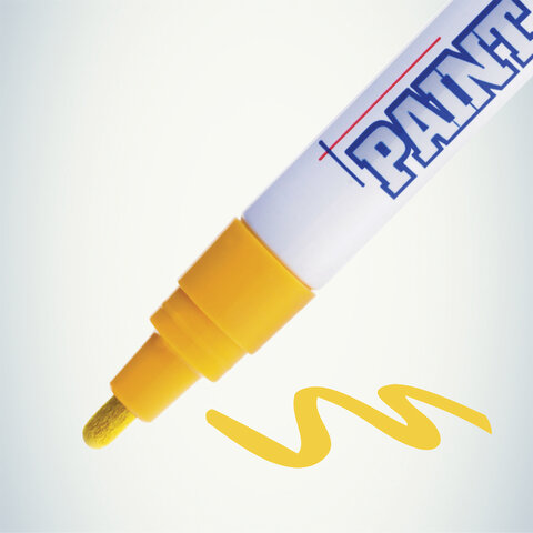 Маркер-краска лаковый (paint marker) 2-4 мм ЖЕЛТЫЙ, НИТРО-ОСНОВА, STAFF PROFIT, для любых поверхностей, 152583