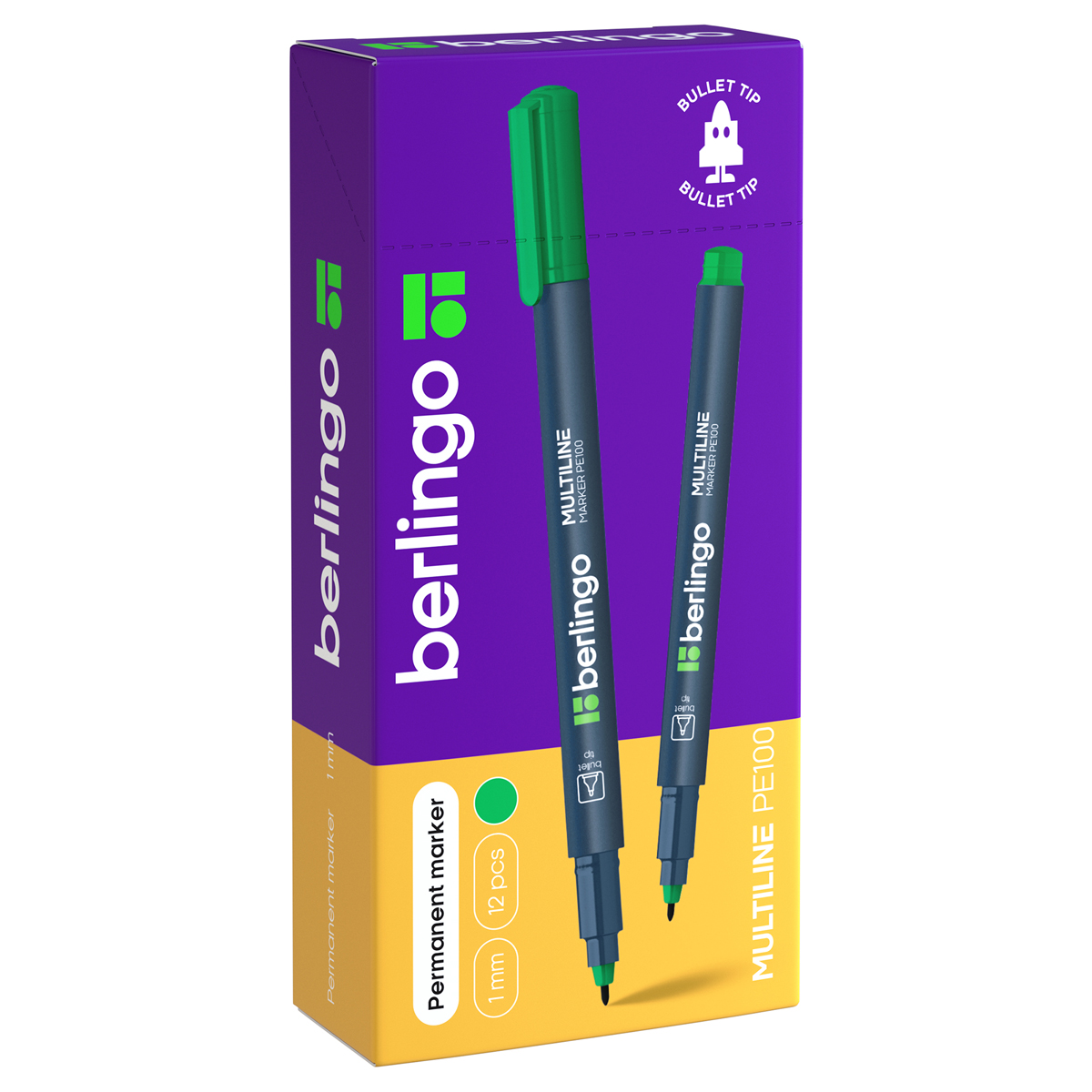 Подходит для письма на любых поверхностях. Чернила на спиртовой основе. Плотный колпачок с клипом надежно предотвращает высыхание. Цвет колпачка соответствует цвету чернил. Закругленный пишущий узел. Ширина линии - 1 мм. Длина непрерывной линии - 500 м. Упакован в картонную коробочку по 12 шт.