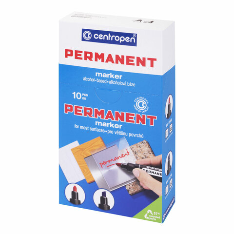 Нестираемый маркер CENTROPEN пишет на любой поверхности: бумага, резина, пластмасса, кожа, стекло, металл.