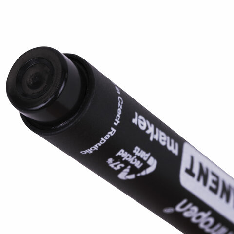 Перманентный маркер на спиртовой основе с закругленным наконечником. Колпачок соответствует цвету чернил. Чернила черного цвета высокой степени светостойкости, термостойкие до 100 градусов.