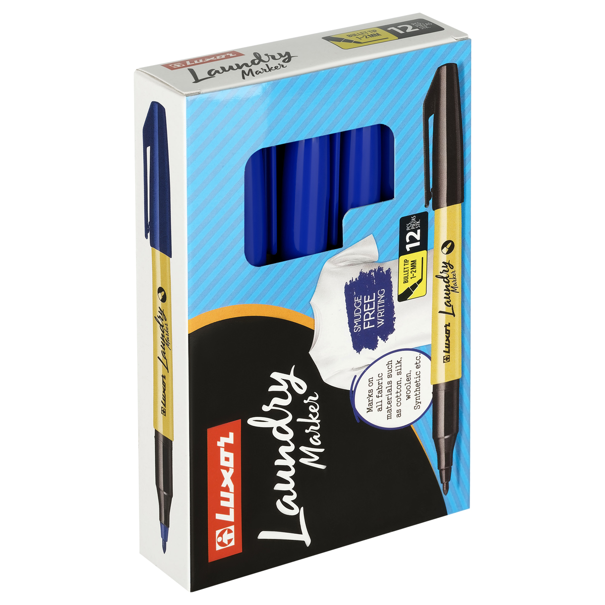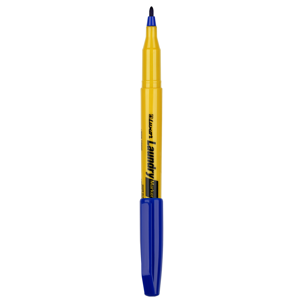 Перманентный маркер для ткани Luxor Laundry синего цвета идеально подходит для простой и надёжной маркировки одежды и идеален для дизайнеров по текстилю. Успешно используется в детских, медицинских учреждениях, воинских частях, а также в прачечных. Подходит для нанесения маркировки на текстиле как в повседневной жизни, так и на производствах. Пулевидный наконечник создаёт линии толщиной 1-2 мм. Цвет автоматически закрепляется через 24 часа, или после глажки. Не смазывается при стирке до 90 градусов, не токсичен. Маркер имеет круглую форму корпуса и водостойкие высокопигментированные чернила на спиртовой основе. Безопасен в применении.