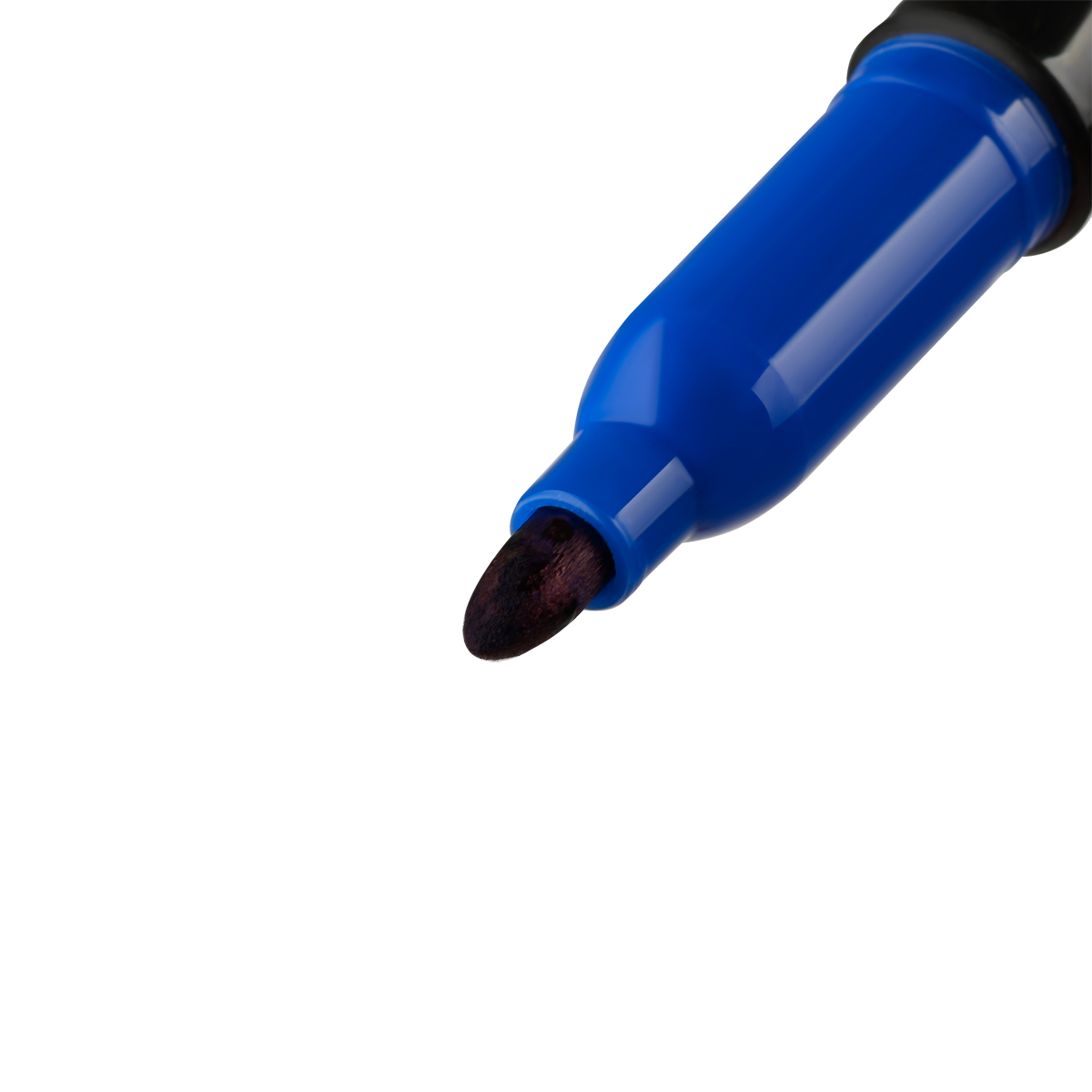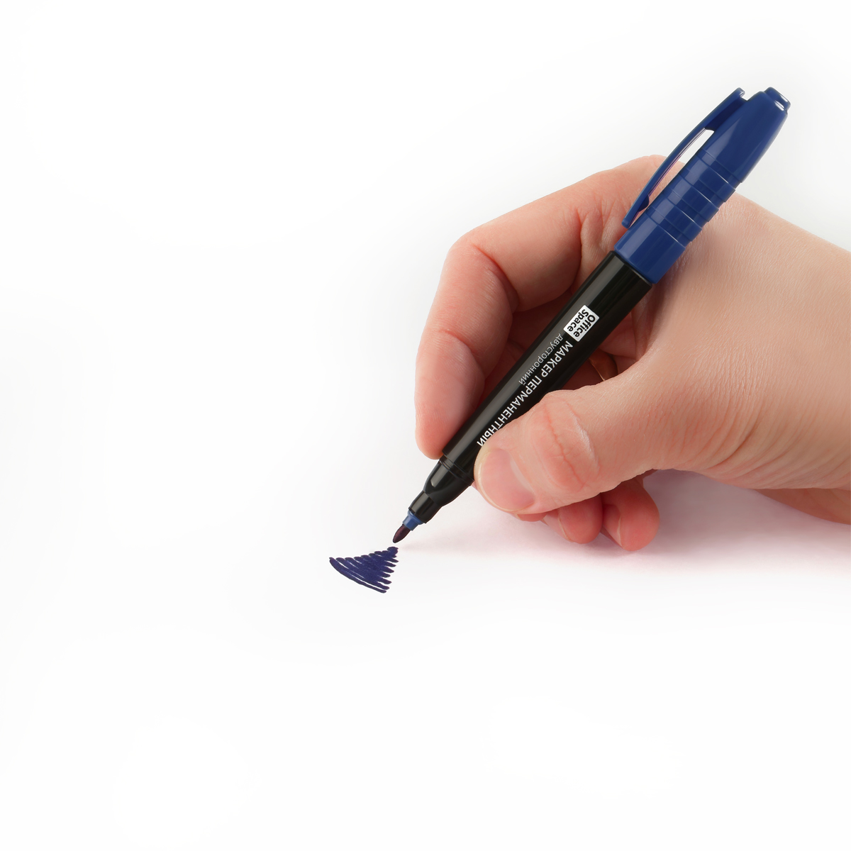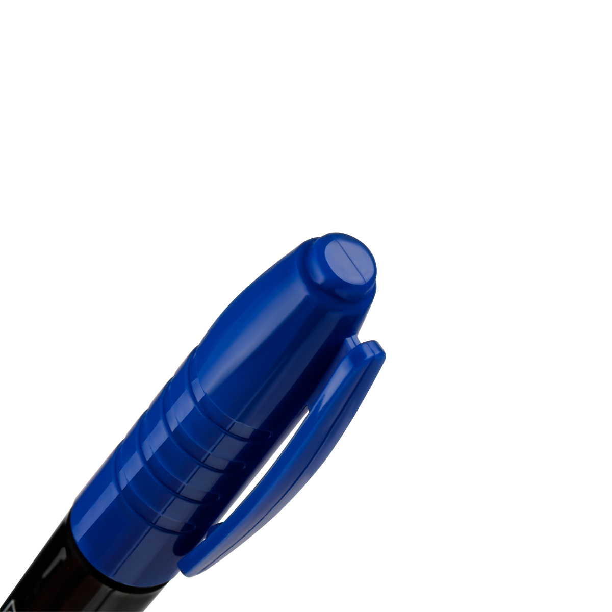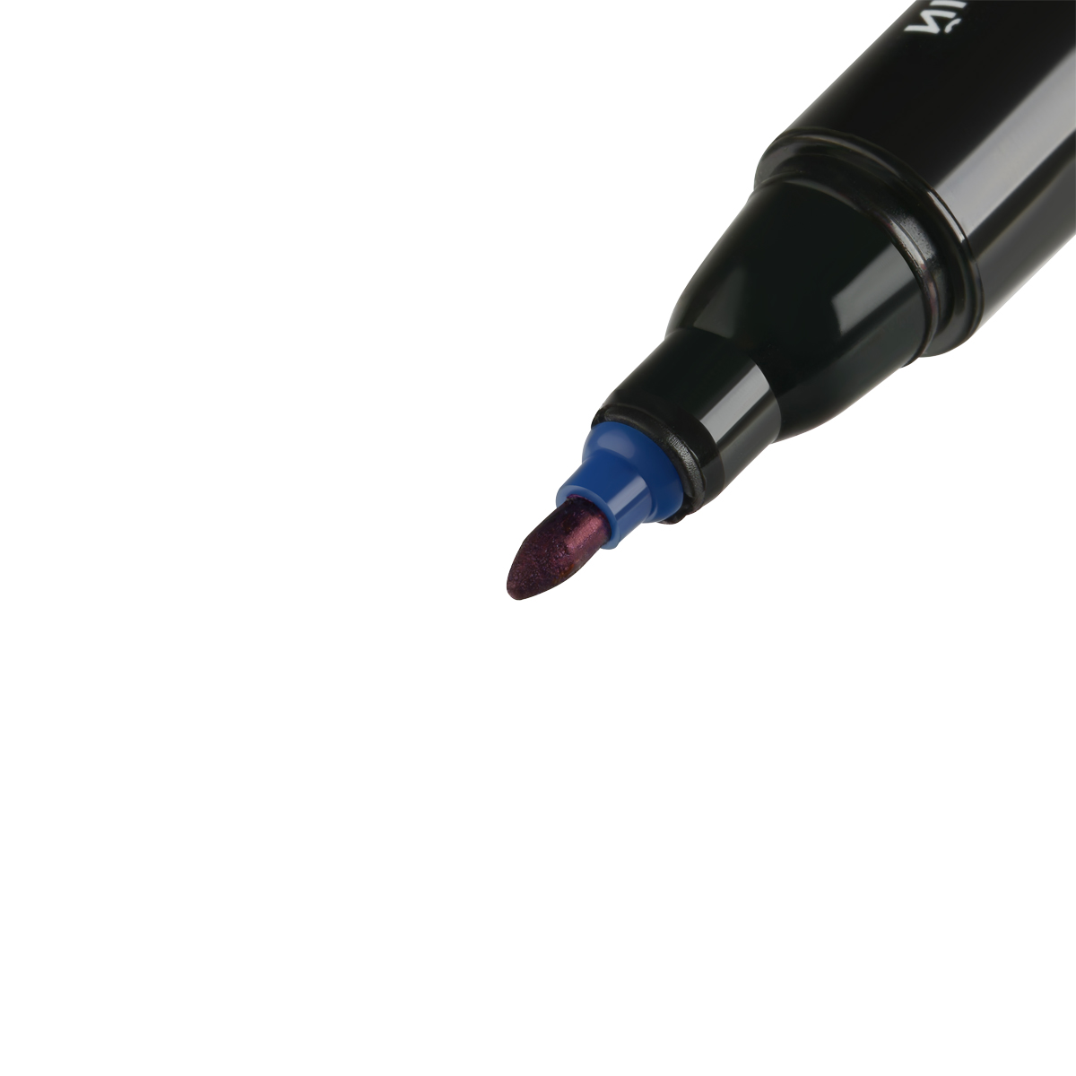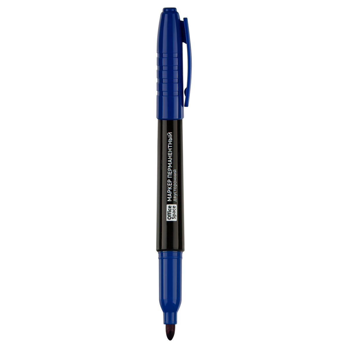 Перманентный двусторонний маркер. Предназначен для письма на большинстве поверхностей: бумаге, коже, пластмассе, металле, резине, ткани. Устойчив к стиранию, воде, свету, температурным и атмосферным воздействиям. Цвет чернил синий.